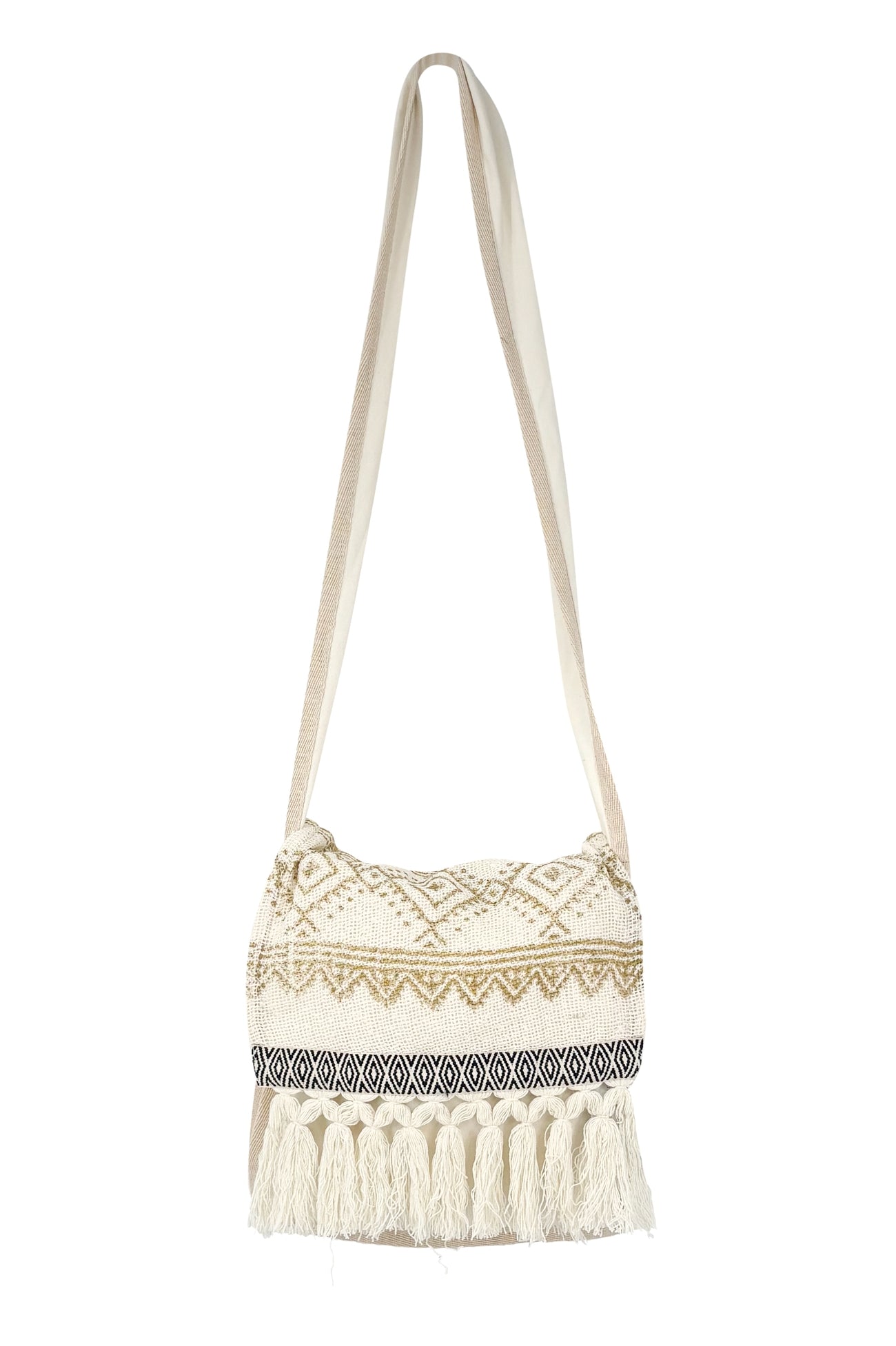 Crée ton look d'été ultime avec le Bag Des Scorva Ecru de couleur écrue. Clouté avec des pompons et un design estampillé à la main, se ferme par le rabat, possède 1 grand compartiment et une poche frontale avec r Le tissu aéré est doux sur la peau. Commande rapidement et profite du style de vie bohème au quotidien.
