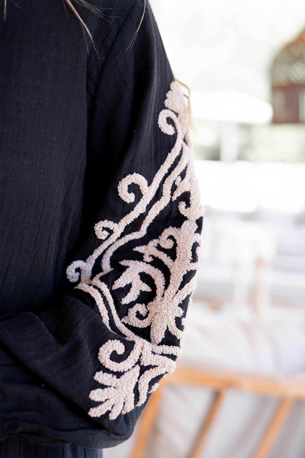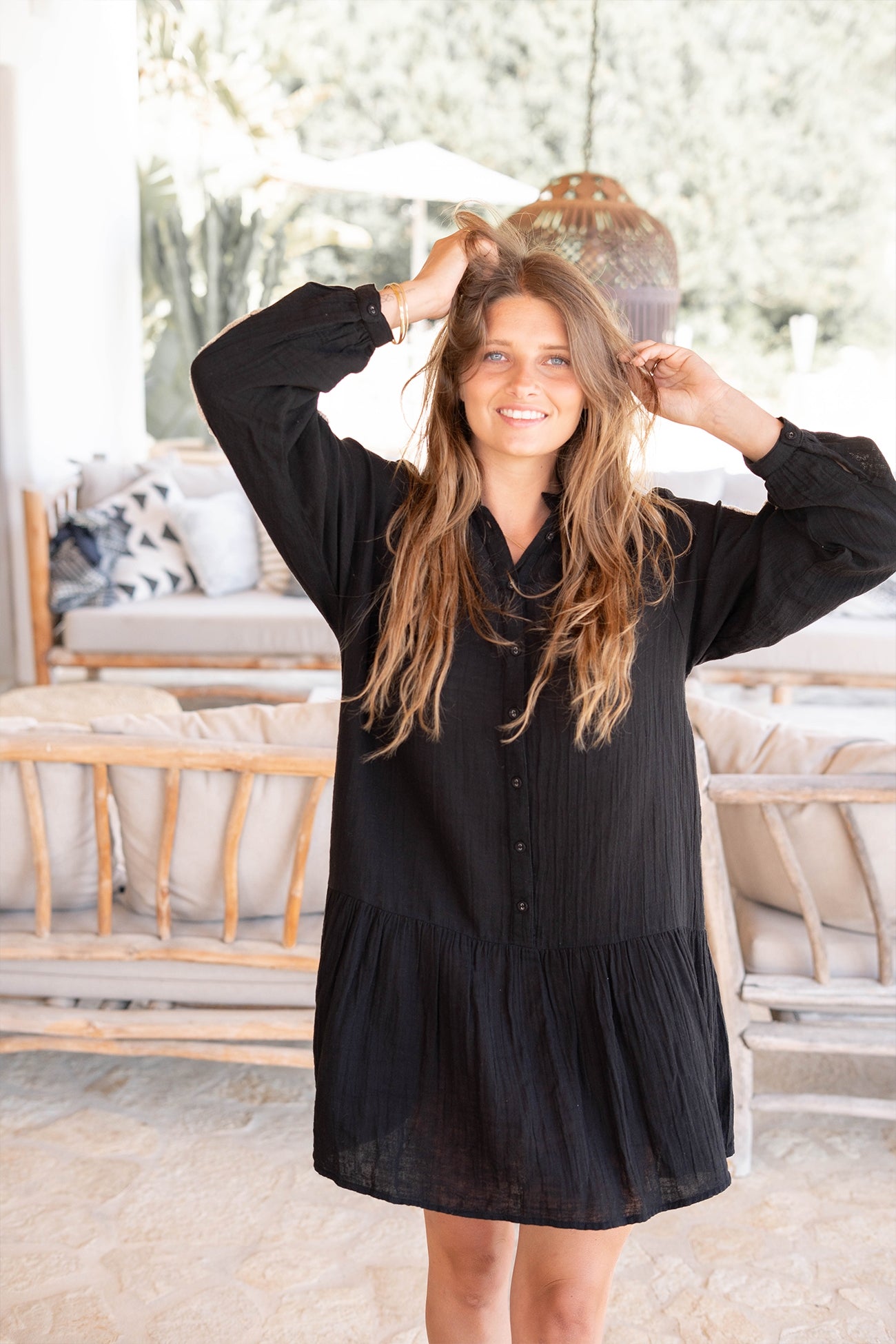 La tunique Plisados Black est un ajout élégant à ta garde-robe d'automne. Cette magnifique tunique aux détails plissés est parfaite pour la prochaine saison d'automne et d'hiver 2025. Le noir élégant crée un look intemporel, tandis que les détails plissés ajoutent une touche ludique. Porte cette tunique sur un pantalon taille haute pour un look chic ou associe-la à un legging en cuir pour un look cool.
