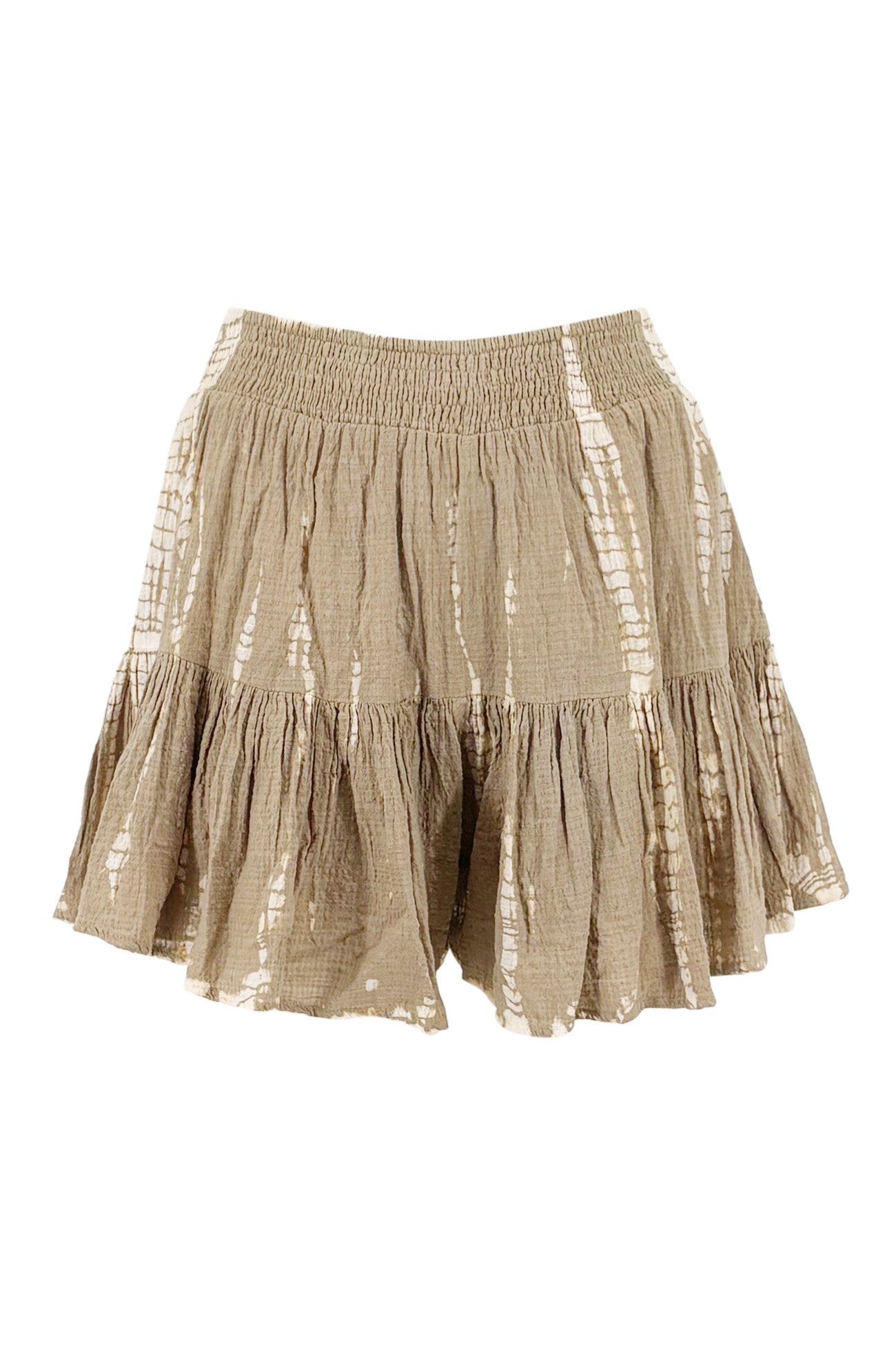 La jupe-culotte Dalina Sera fait partie de la collection Sand Stories. Cette jupe-culotte en coton combine la silhouette féminine d'une jupe avec le confort d'un short. Par conséquent, cet article se sent instantanément pratique en plus d'être élégant. L'imprimé tie-dye organique en taupe et ivoire donne un aspect calme et luxueux qui est parfait pour un look décontracté de station balnéaire.