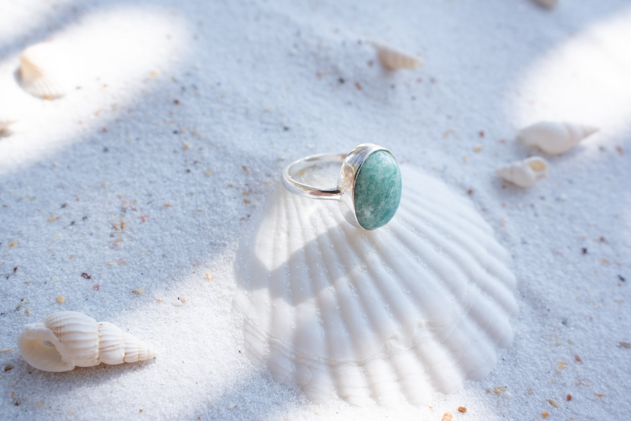 Product gegevens: Laiton recouvert d'argent sterling 925 véritable (plaqué argent), avec une pierre Amazonite turquoise en pierre naturelle véritable. La bague est livrée dans une belle boîte cadeau