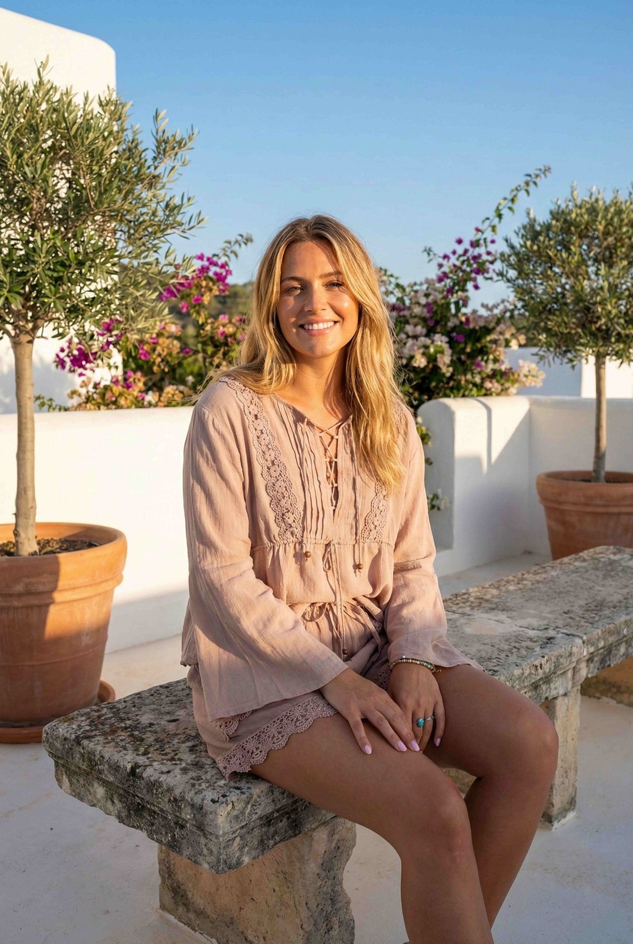 Deze collectie brengt de ultieme Ibiza-look tot leven met luchtige silhouetten, verfijnde kanten details en een vrouwelijke uitstraling.