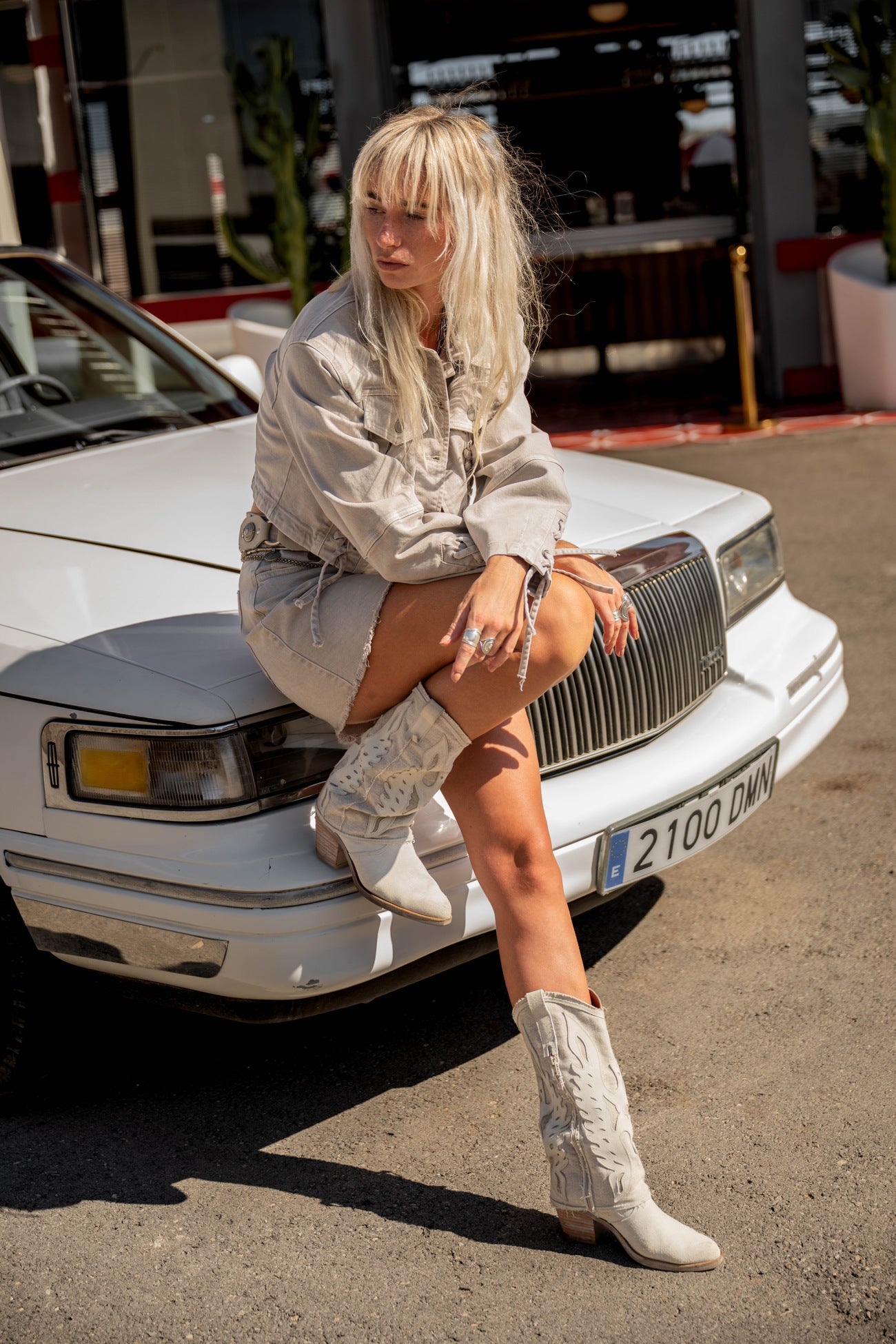 Verder sluit Alexa perfect aan bij de Destination Pink sfeer. Stoer denim ontmoet vrouwelijke materialen. Denk aan kant, see-through details en zachte tinten. Voeg een harness bag of belt toe voor extra edge. Zo ontstaat die typische Motel Escape mix van bold en bohemian.