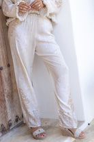 Deze pantalon vormt de basis voor een complete resort wear dames look. Combineer haar met de bijpassende blouse voor een sterke set. Of draag haar met een eenvoudige top voor balans. De ecru tint versterkt de frisse uitstraling.