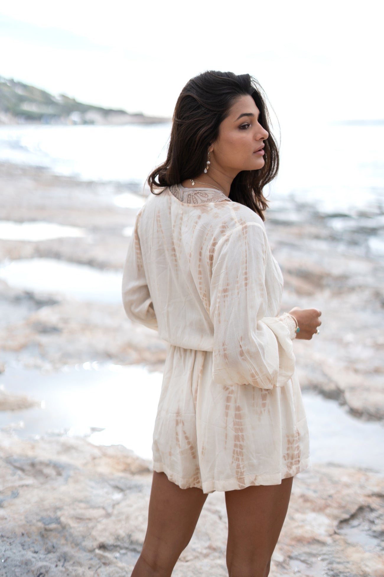 Creëer jouw ultieme zomerse look met de Playsuit Santiago Menorca Ecru in de kleur ecru. De luchtige stof voelt zacht aan op je huid. Shop nu bij ibizamode en straal deze zomer in stijl.