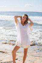 Op zoek naar een item met bohemian flair? Dan is de Short Kaftan Jada Flo White van ibzmode jouw match. Heeft een V-hals, gemaakt van een luchtige stof, rijkelijk bezet met lovertjes bij de mouwen en onde Perfect te combineren met slippers, een basic top of een lichte blouse. Nu verkrijgbaar bij ibizamode – ontdek meer op Brands of Ibiza.