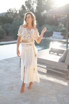 Op zoek naar een item met bohemian flair? Dan is de Skirt Santi Paisley Ivory van ibzmode jouw match. Lange jurk met een gedraaid detail aan de voorkant, heeft een stretch band op de rug, pofmouwen met Het natuurlijke materiaal zorgt voor een luchtige feel. Nu verkrijgbaar bij ibizamode – ontdek meer op Brands of Ibiza.