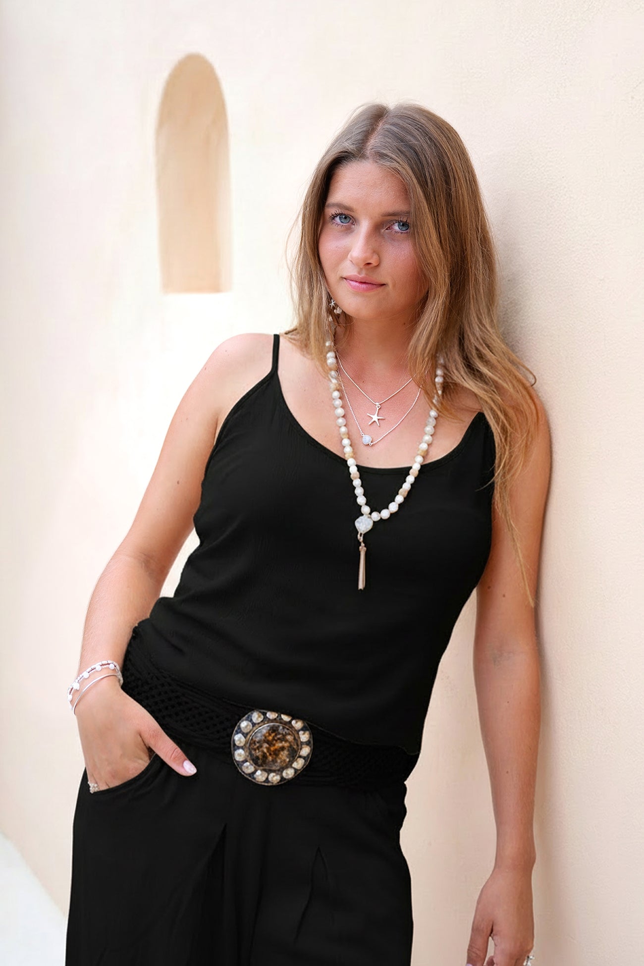 Haal jouw favoriete basic in huis met de Strap Top Yago Black! Deze verfijnde top is perfect voor het komende lente/zomerseizoen van 2026. Puur, luchtig en comfortabel en makkelijk te combineren met welk ander kledingstuk of print dan ook. Het is de start van elke outfit.